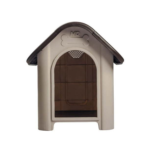 The  Dog House includes a matching bowl and is perfect for medium breeds. Its unique floor design allows the floor to be removed for easy cleaning and interior cleaning. Both dog house and bowl are made of durable polypropylene resin that is moisture, rust, stain, and scratch resistant. Construction also features UV protection. The roof design prevents rain or other weather elements from getting inside. Side and rear ventilation allow for maximum pet comfort. An elevated design keeps your dog off the direct ground. The accompanying bowl can be used for water or food. Both dog houses and bowls are perfect for indoor or outdoor use.