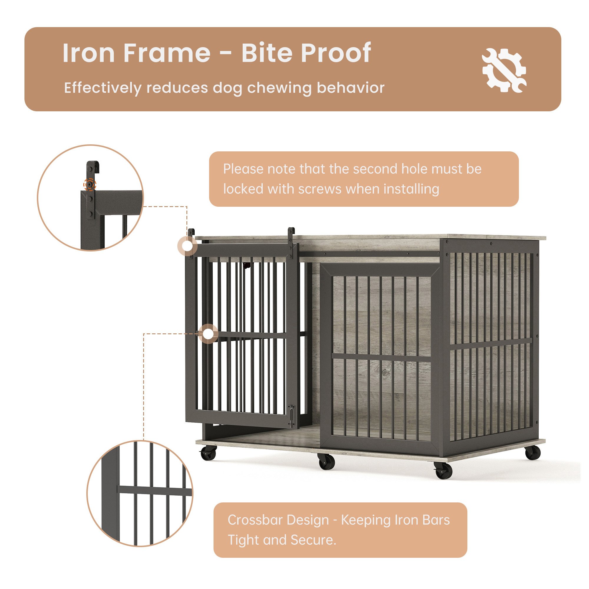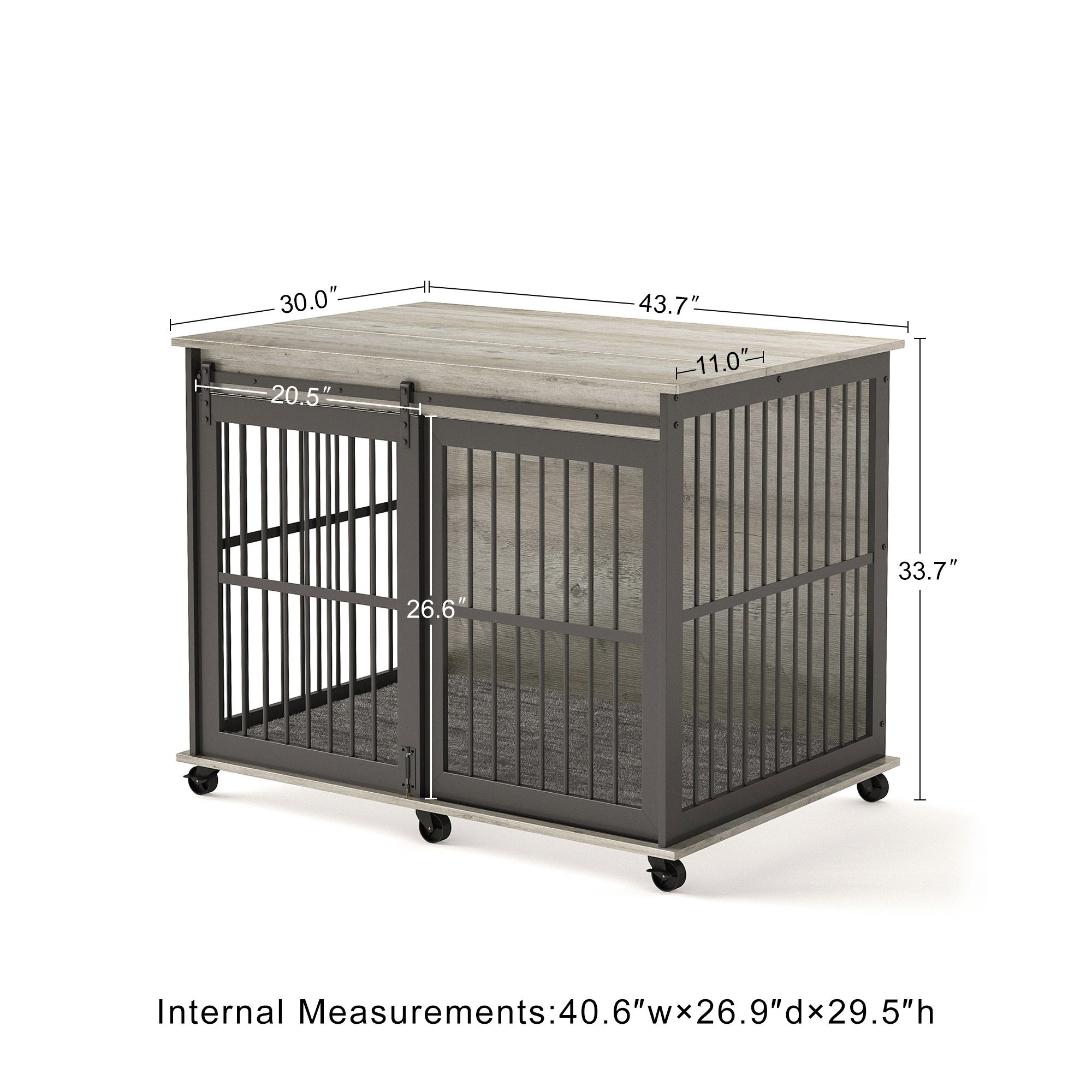 Furniture dog crate sliding iron door dog crate with mat. (Grey,43.7''W x 30''D x 33.7''H)
