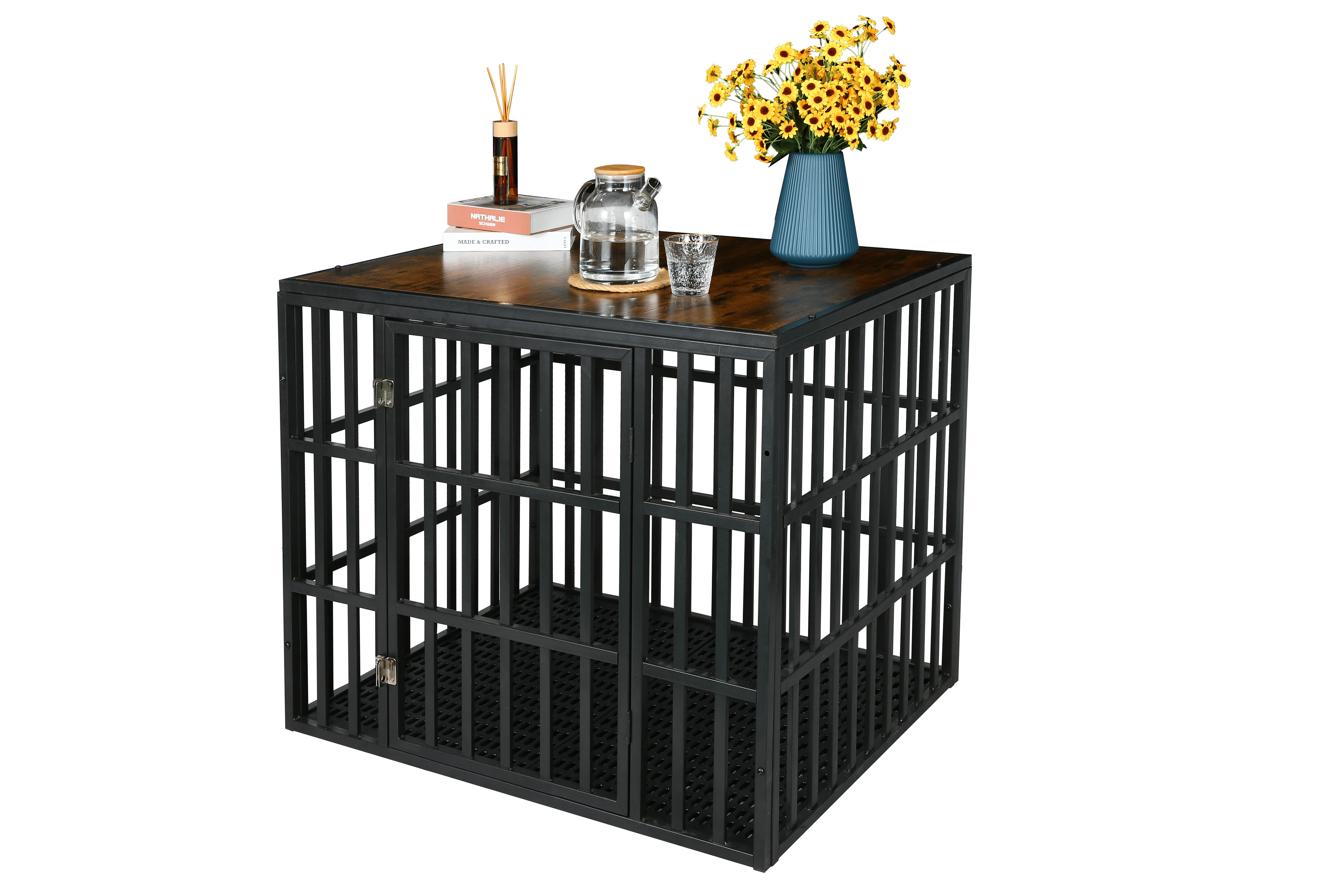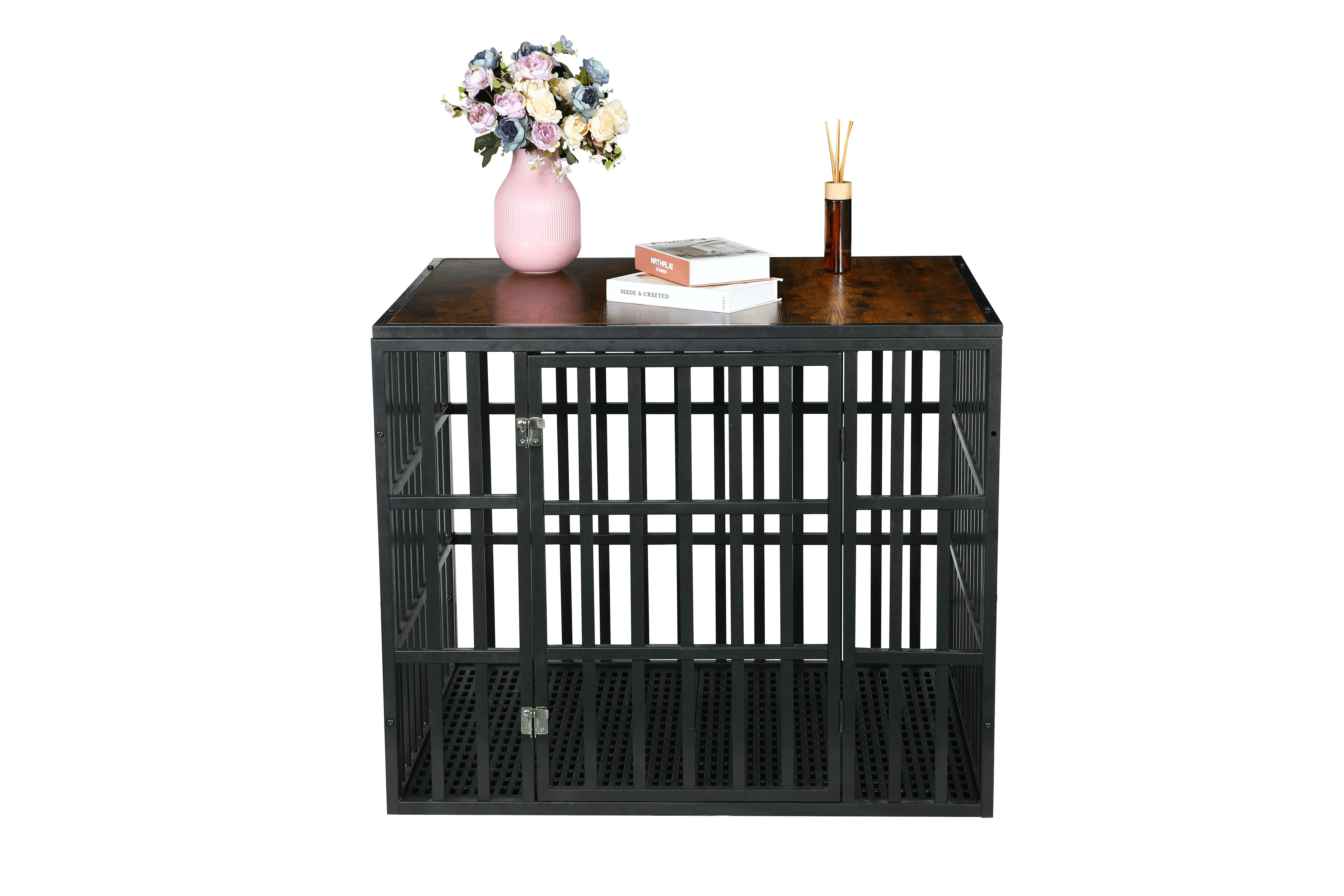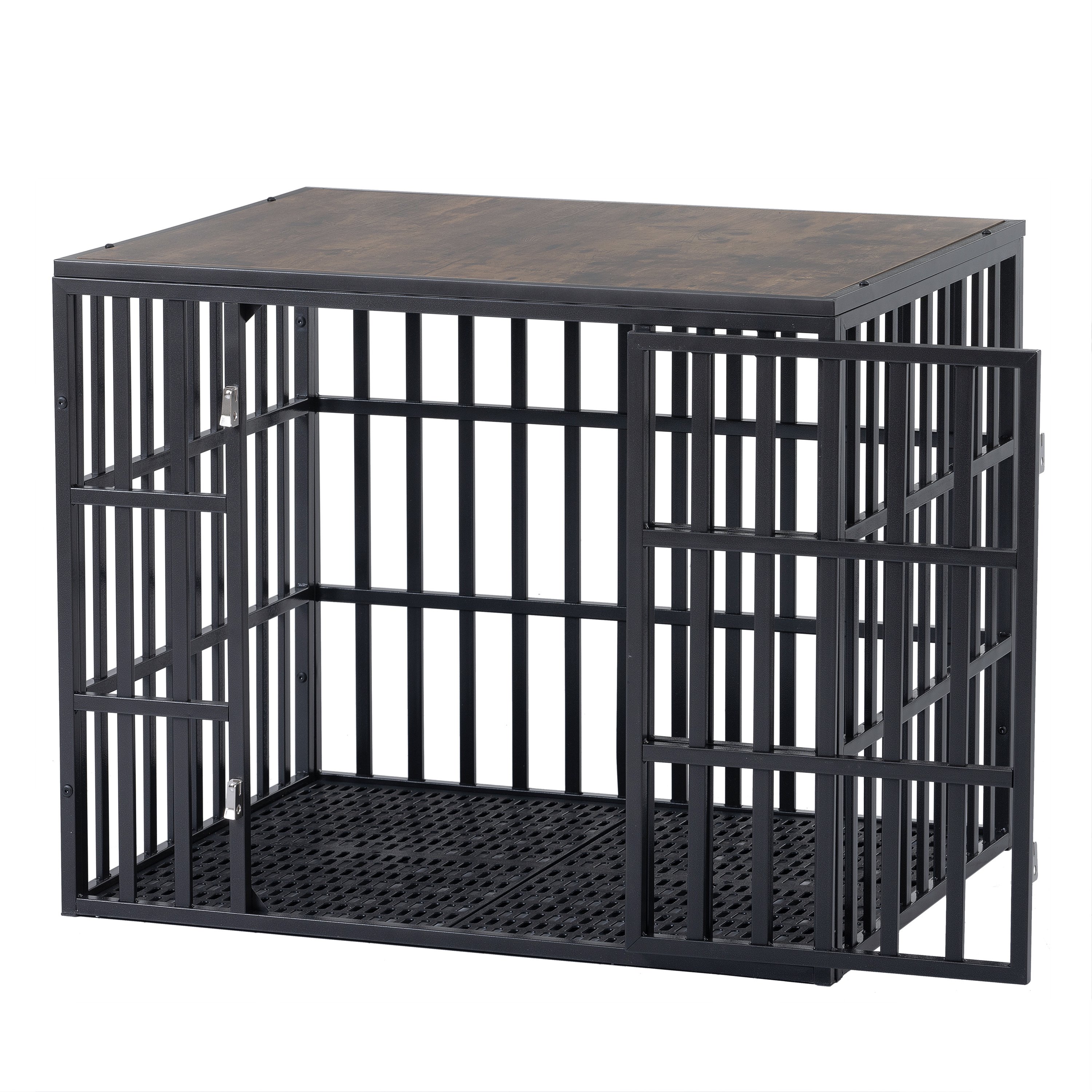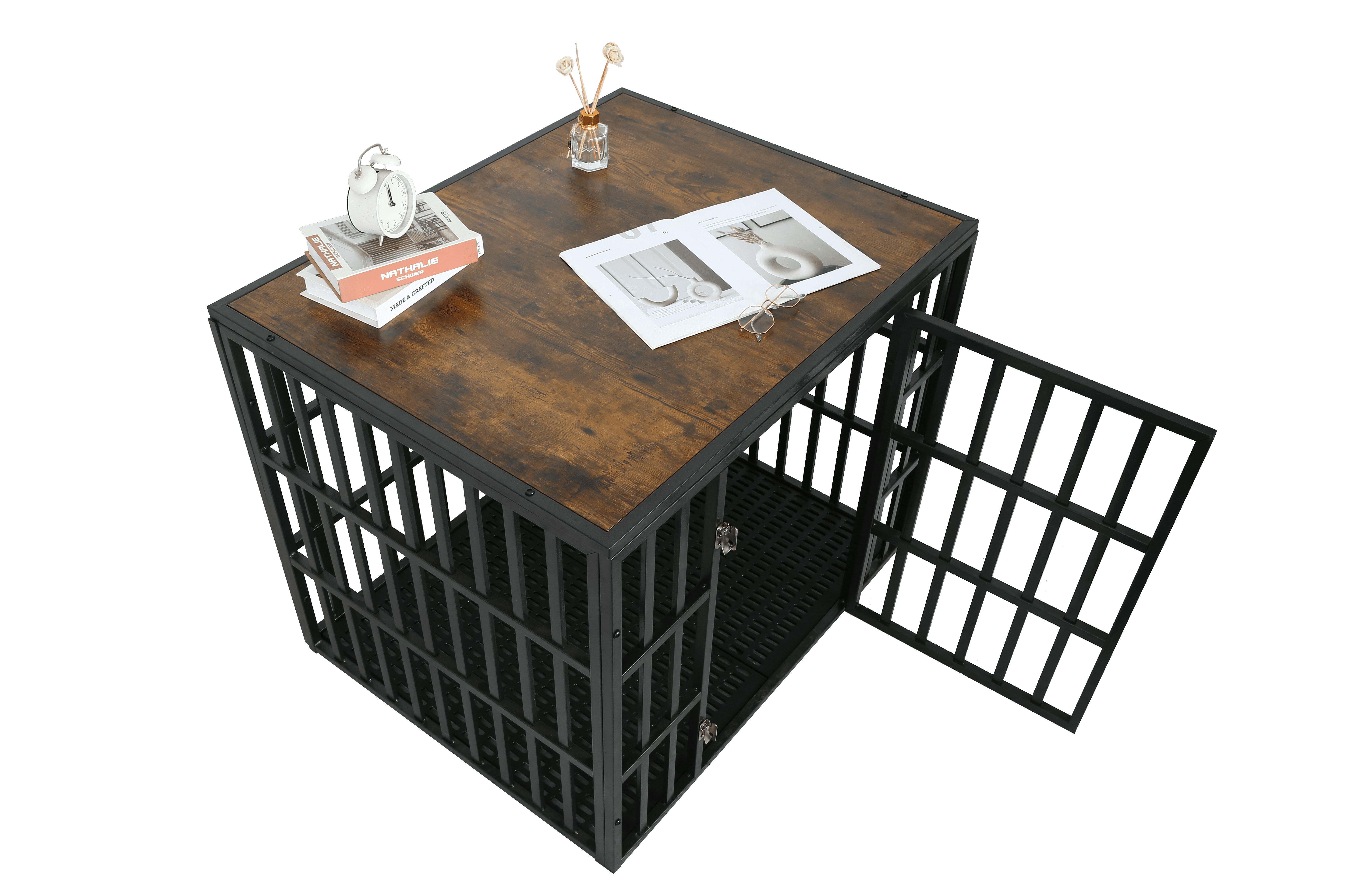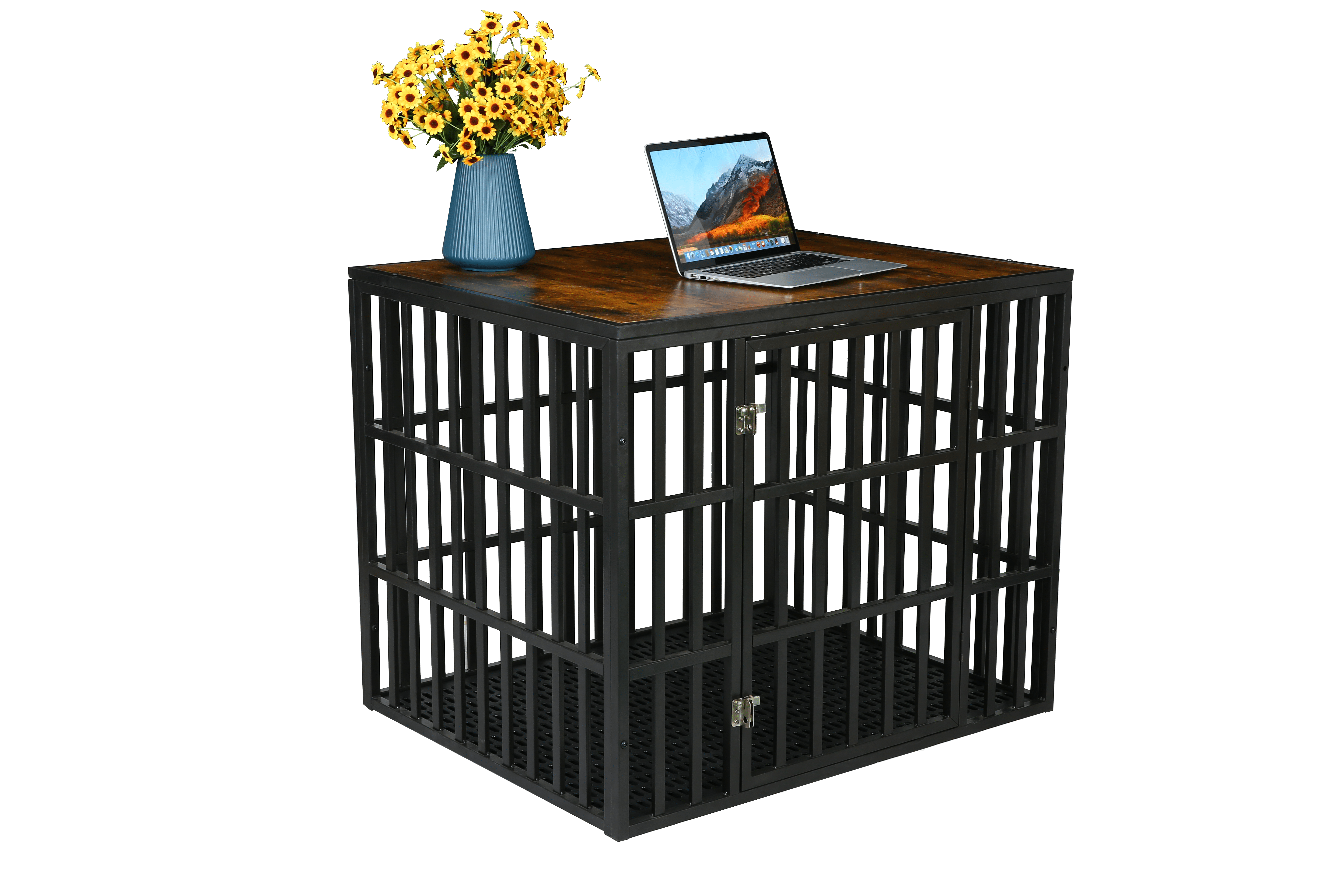 NEW HEAVY DUTY DOG CRATE FURNITURE FOR LARGE DOGS WOOD & STEEL DESIGN DOG CAGE INDOOR & OUTDOOR PET KENNEL 38X30X32INCH PET PLAYPEN WITH COVER METAL D
