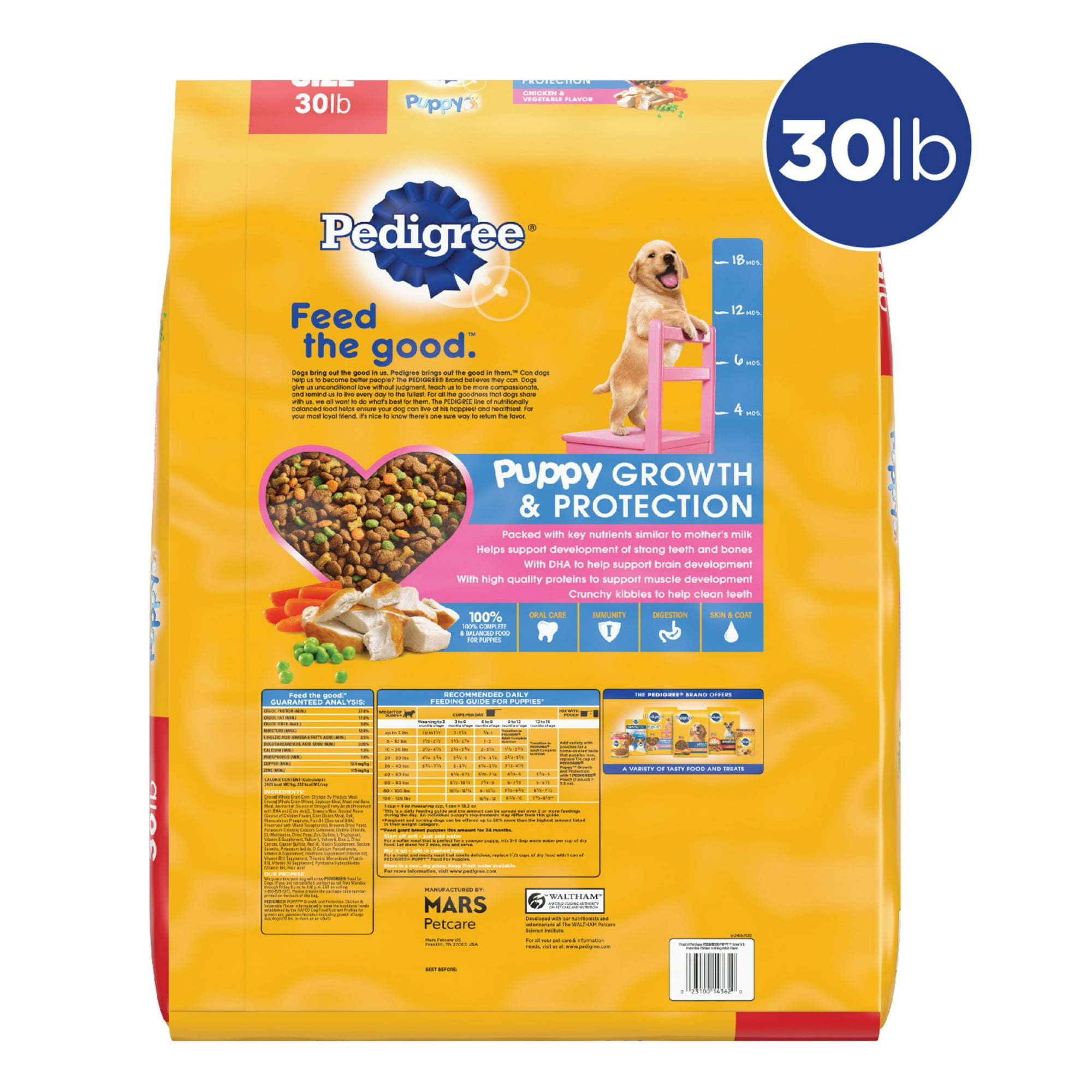 Contains one (1) PEDIGREE Puppy Growth & Protection Dry Dog Food Chicken & Vegetable Flavor, 30 lb. Bag