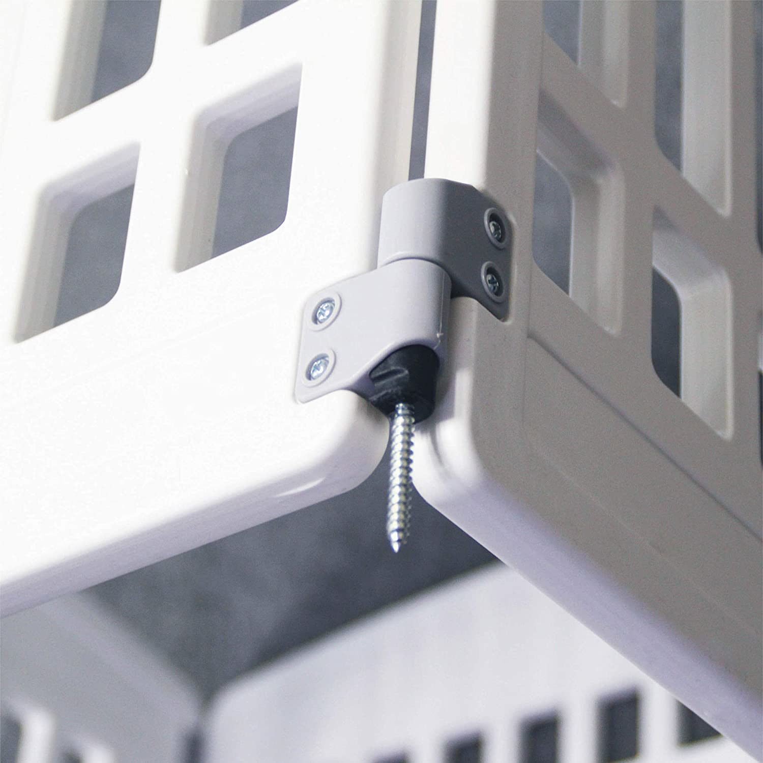 SECURE AREA: Give your pet an entertainment space that belongs to it.Pet playpen tall enough for a small pet to reach into the enclosure; puppy playpen keeps your pets safe from others.Our pet fence is made of safe; high-quality plastic; and is artificially trimmed; smooth and burr-free; so You don’t have to worry about your pet getting hurt.EASY TO INSTALL: Our dog fence comes with 4 panels and pet playpen constructed with simple assembly instructions will set up in minutes. You can quickly place the pet fence where you want.DIMENSIONS:3 ordinary door panels 33.5" W * 24" H; 1 panel with door 33.5" W * 24" H. The assembled size is 33.5(L)x33.5(W)x24(H). Suitable for small and medium-sized pets. Suggestion: The weight of pets should not exceed 44LB.INDOOR AND OUTDOOR: The bottom is equipped with a suction cup; which is not easy to slide. It is better when placed on smooth floors and tiles. In addition; it is equipped with 4 screws; which can fix the fence when it is used on outdoor grass.
