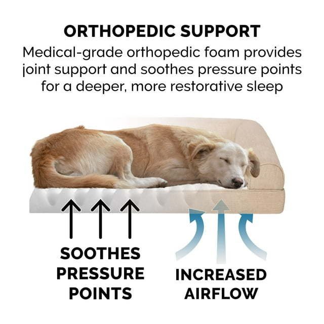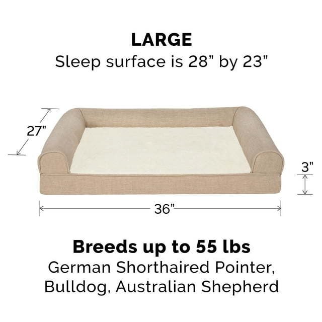 Pet Products Plush & Performance Linen Orthopedic Sofa Pet Bed for Dogs & Cats - Flax, Large